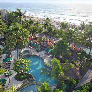 Located amongst lush green landscaped gardens, right on Legian Beach, this property offers a wide range of facilities and leisure options. There are a variety of accommodation types on offer, all newly renovated from Deluxe garden rooms through to Family rooms and new Deluxe Garden Villas and Pool Villas all with VIP facilities. Each air-conditioned room is equipped with a mini-bar/fridge, Satellite TV with in-house movies, DVD player, safe deposit box, tea / coffee making facilities, IDD telephone, and a terrace or balcony. The available facilities include free Wi-Fi throughout the property, 2 swimming pools, Spa, an open-air restaurant, as well as various other food and beverage outlets. The hotel offers a relaxed atmosphere and is a great place to watch the famous Legian sunset. Many guests have returned here year after year.