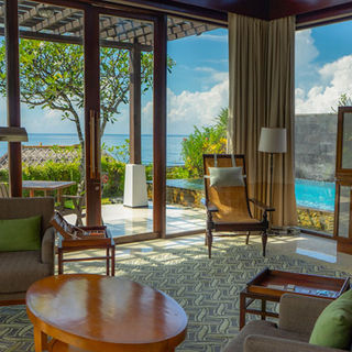 This beachfront luxury resort rests upon eight hectares, overlooking the sparkling Indian Ocean. The resort features 39 suites, all with spellbinding views to the ocean, and 42 luxury villas, each with indulging sun lounge and terrace, outdoor shower and private pool. There are 2 restaurants, 2 bars, a wedding chapel, and a selection of venues for private functions. Samabe Bali Resort & Villas also introduces a whole new concept of luxury called "Unlimited Privileges", an optional addition with benefits that include premium meals and beverages, a wide selection of Samabe signature activities, 24-hour butler service, entertainment, and spa treatments.